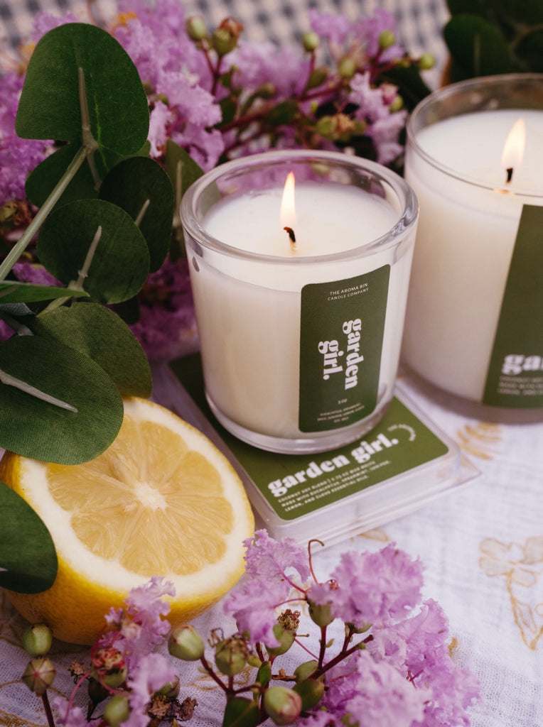 Stress melts away with every flicker of this flame. Garden Girl aids in self-care with soothing spearmint and the calming aura of eucalyptus. While base notes of sea salt elevate you into a relaxing at-home spa day.
